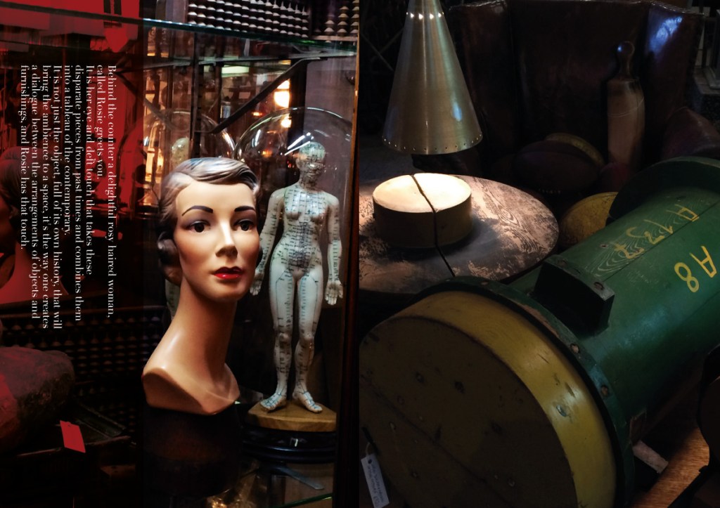 Behind the counter of this wonderful store was a delightful rosy haired woman, called Rosie. It was her eye and deft touch that took these disparate pieces from past times, and created the ever-changing landscape of this establishment that excited and inspired, combining them into a tableau of the contemporary.